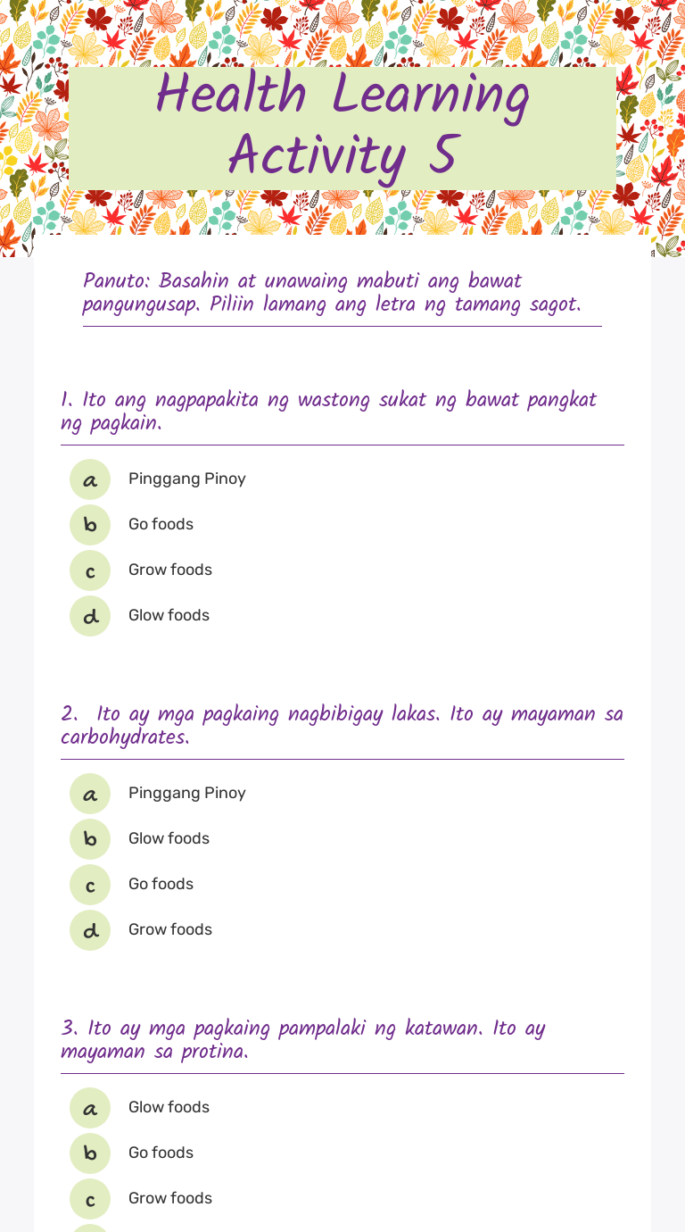 Learn vocabulary terms and more with flashcards games and other study tools. Kumain ng balanseng pagkain araw-araw. Thanks to all our File Creators Contributors and Files Editors for sharing these files.